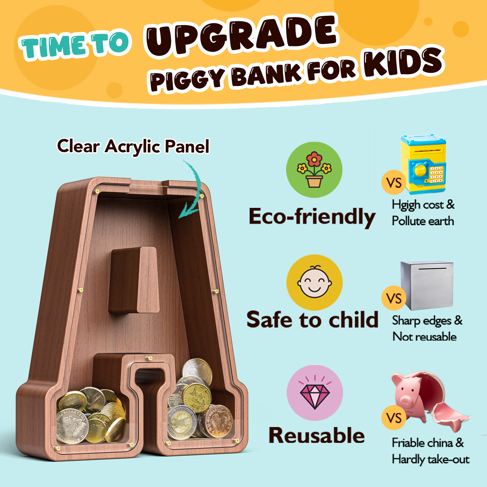 That thoughtful transparent acrylic panel? It’s like a front-row seat to your child’s saving journey! Every coin they drop in lets them see their savings grow—clear, exciting positive feedback that sparks their enthusiasm. Saving becomes a game, and they’ll be eager to keep adding to their stash, one happy coin at a time.